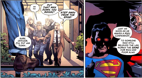 Unlike Superman-Red/Superman-Blue, the Clark Kent presented by Grant Morrison and Rags Morales actually seems like he’s able to bring the character into a new era. Rather than spending time on his origins (Morrison has already captured Superman’s birth as perfectly and as quickly as possible in All-Star Superman), Action Comics jumps right into Kent’s formative days as a superhero. His mission is to make sure that the ultra-rich of Metropolis abide by the same laws as the ultra-poor, which makes his choice of wardrobe nothing if not appropriate. With his jeans rolled up and his cape hanging to his t-shirt by the force of will, this Superman looks more comfortable putting in a hard day’s work than being a paragon of virtue.